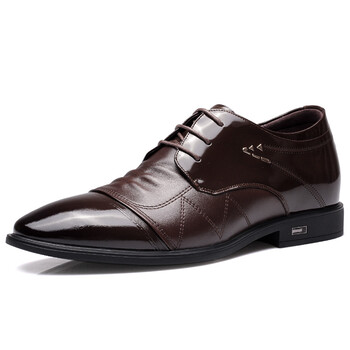 强人增高鞋男 73DA18603 亮面皮时尚商务正装内增高男士单皮鞋 棕色 39码