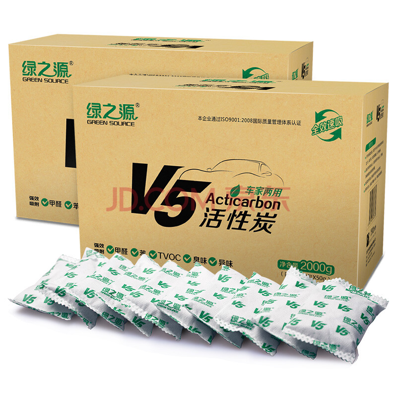 绿之源 2kg*2箱V5经济装 车家两用活性炭炭包除甲醛清除剂汽车除味去甲醛干燥剂竹炭包