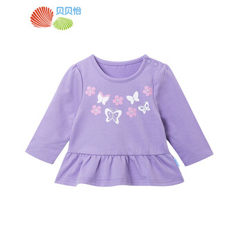 贝贝怡 Bornbay儿童卫衣女童春季肩开扣荷叶裙摆上衣外出服 171S362 紫色 73cm