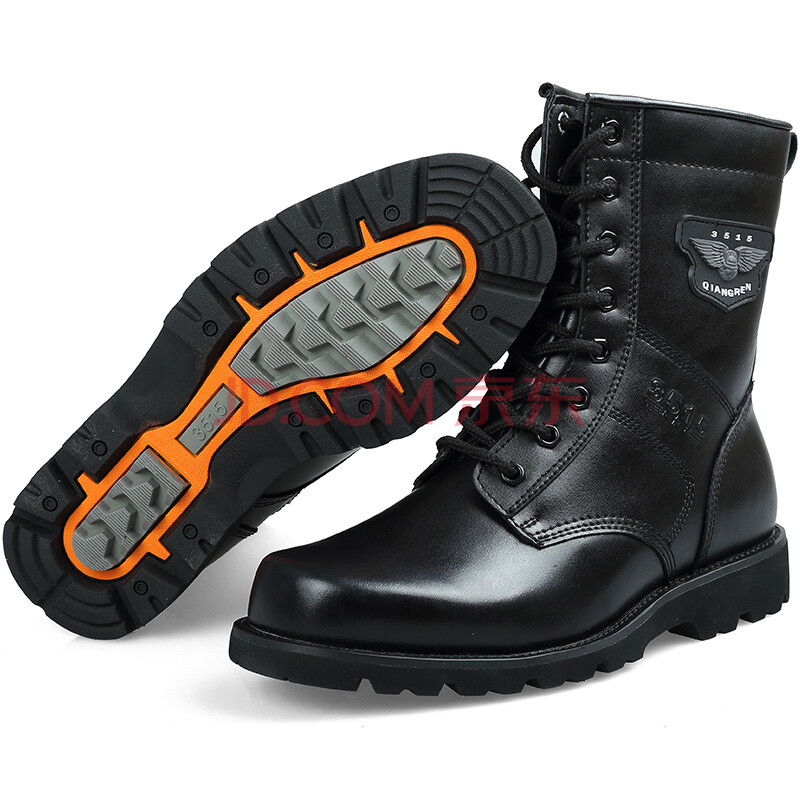 强人军靴男 JB8-13022 特种兵户外飞行靴子系带款耐磨战术男靴 黑色 38码