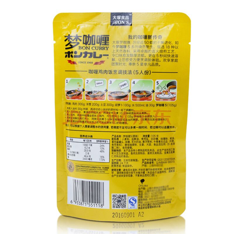 梦咖喱(BON CURRY)原味 日式咖喱粉5秒速溶 调味料 105g