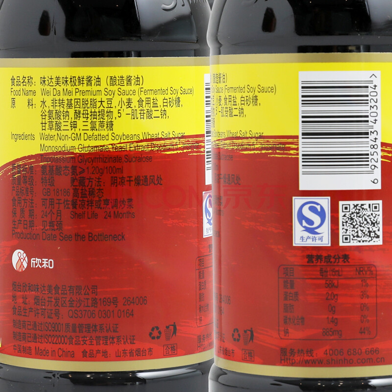 欣和 味达美 味极鲜酱油1L 生抽厨房调料
