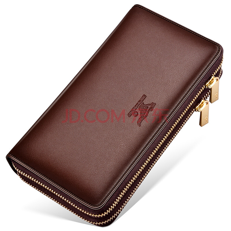 七匹狼男士手包 大容量头层牛皮拉链钱包手拿包1A2154084-02啡色升级版大号