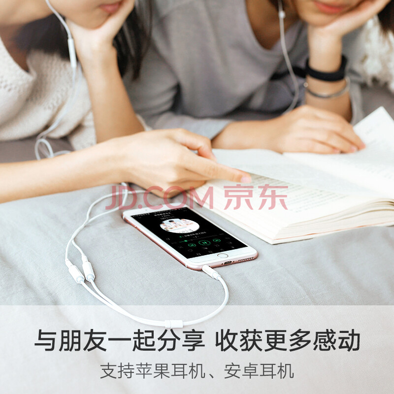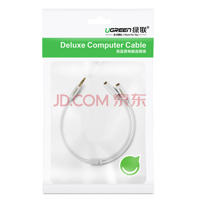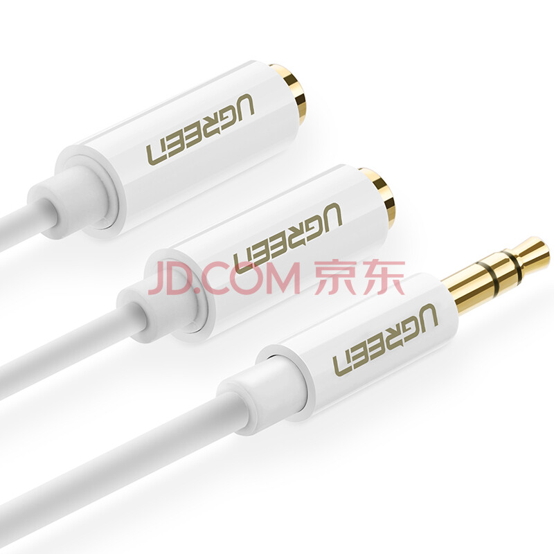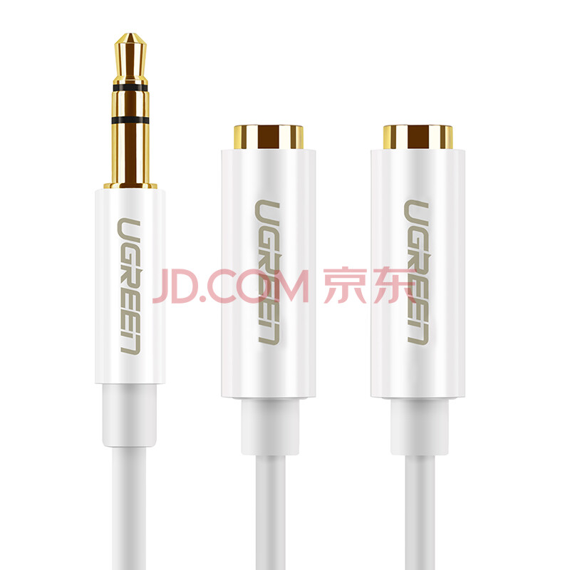 绿联(UGREEN)3.5mm音频线一分二母 1分2情侣耳机分线器 3.5音响延长立体声转接线 手机平板转换头 白 10739