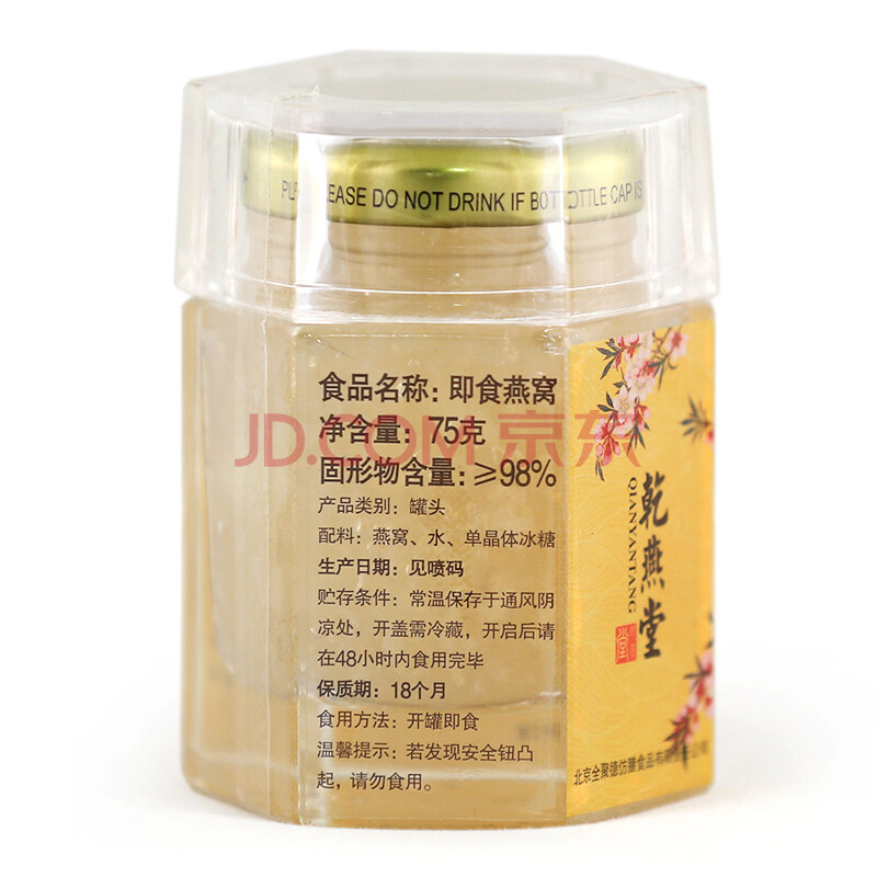 全聚德仿膳监制 乾燕堂 即食燕窝 浓缩冰糖燕窝 孕妇营养品 固形物≥98% 尊享单瓶装 75g/瓶
