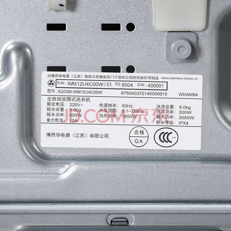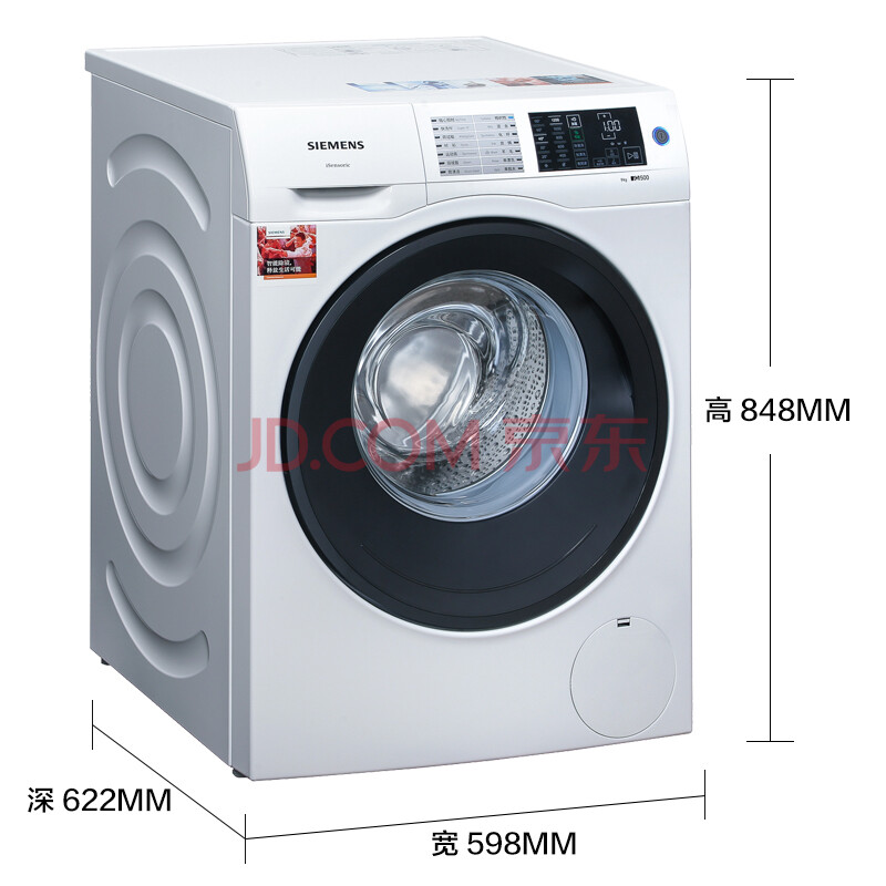 西门子(SIEMENS) 9公斤 变频滚筒洗衣机 全屏触摸显示器 加速洗 节能洗 白色 XQG90-WM12U4C00W