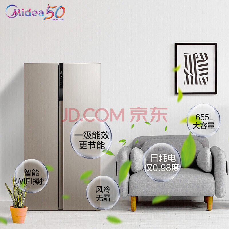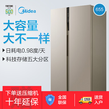 美的(Midea)655升 对开门冰箱 变频无霜 一级能效 智能APP 大容量电冰箱 米兰金 BCD-655WKPZM(E)