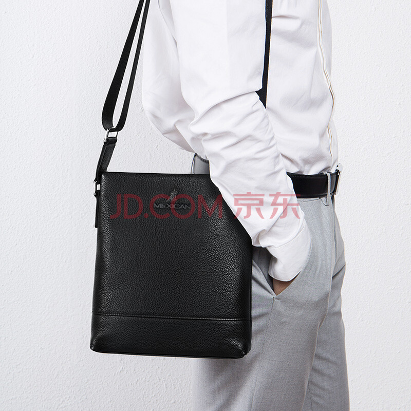 稻草人(MEXICAN)单肩包男式时尚男包商务休闲挎包竖款单肩斜挎包潮流精品手提包50500黑色