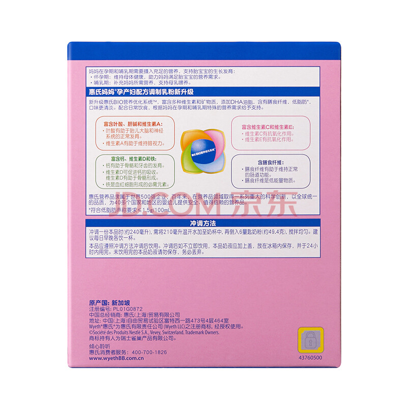 惠氏(Wyeth)S-26 爱儿乐 妈妈奶粉 孕妈奶粉 孕产妇营养配方 350克(盒装)