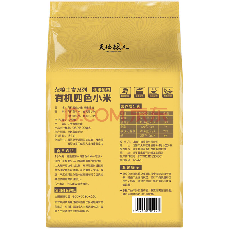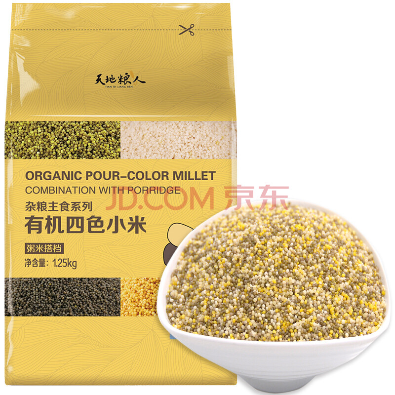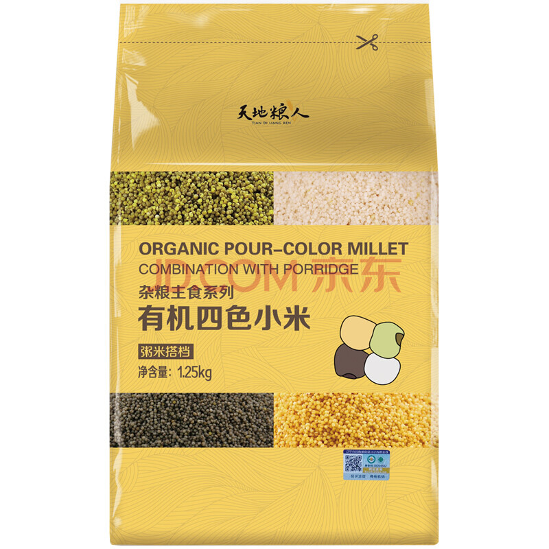天地粮人 有机 四色小米 杂粮粥米搭档1.25kg(无添加 无染色 小黄米 月子米 孕婴 东北 五谷杂粮 大米伴侣)
