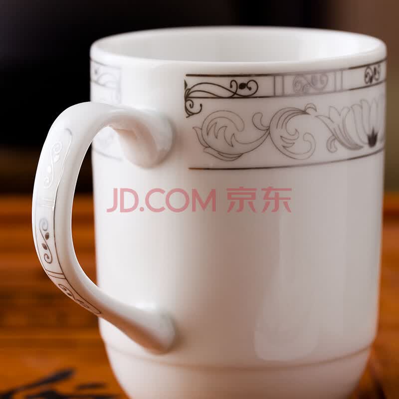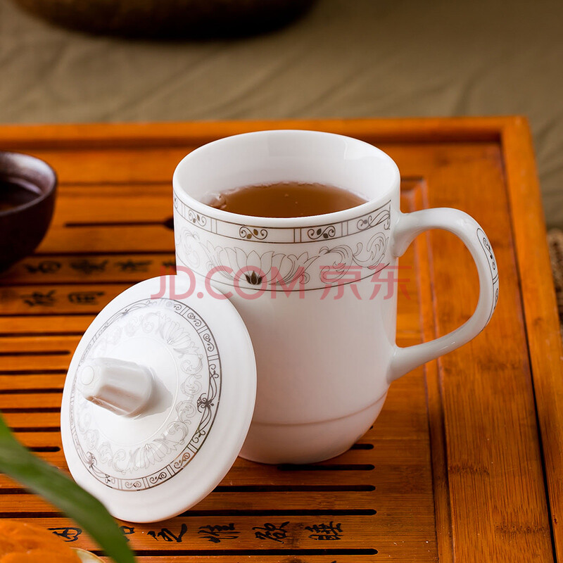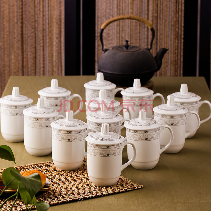 乐享 茶杯陶瓷盖杯12只装带盖开会杯子商务会议办公水杯套装青莲