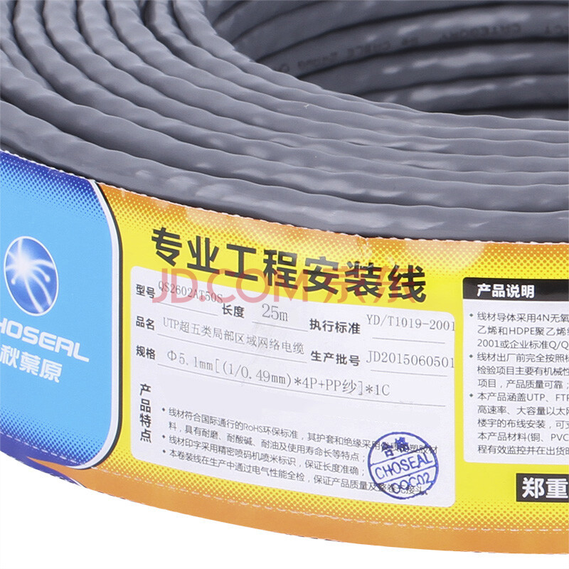 秋叶原(CHOSEAL)工程级超五类网线 高速网络线 纯铜网线 工程类网线 25米 QS2602AT25