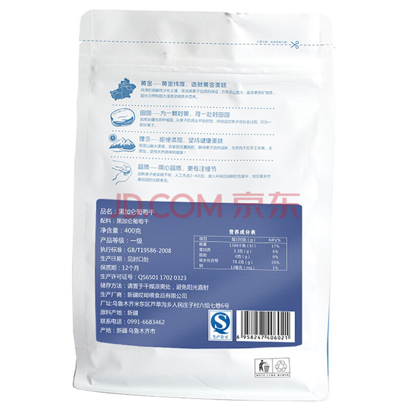 黄金田园 干果零食 新疆特产黑葡萄干 提子干400g/袋