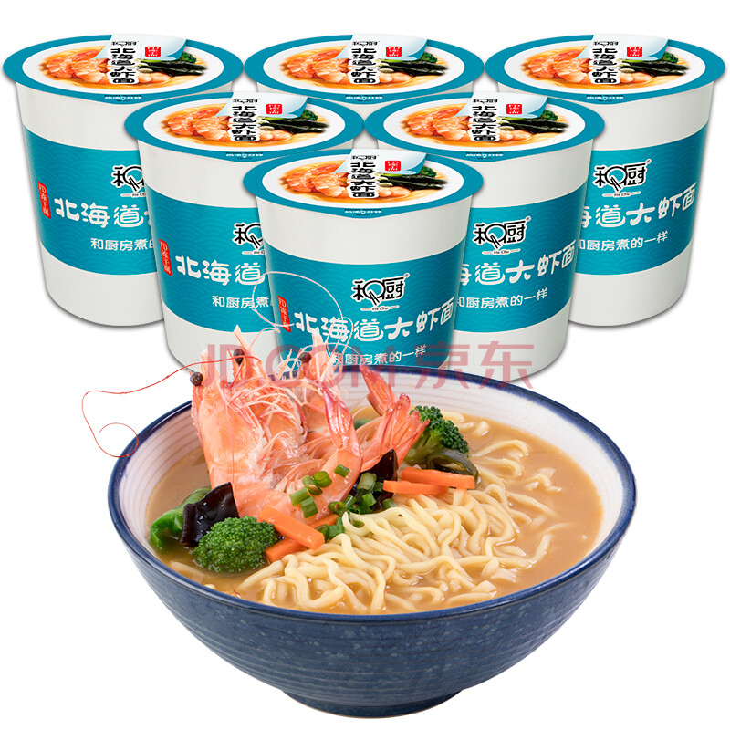 和厨 方便面 北海道大虾面 FD冻干非油炸泡面 整只大虾 61g*6桶 整箱装