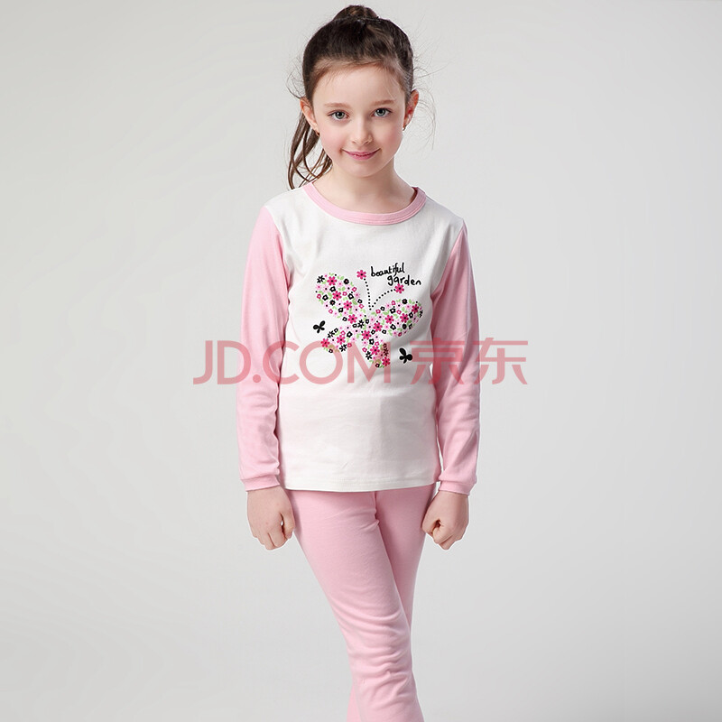 馨颂 女童美丽花园家居服套装儿童春款薄款内衣秋衣秋裤睡衣 C094D 粉色 130