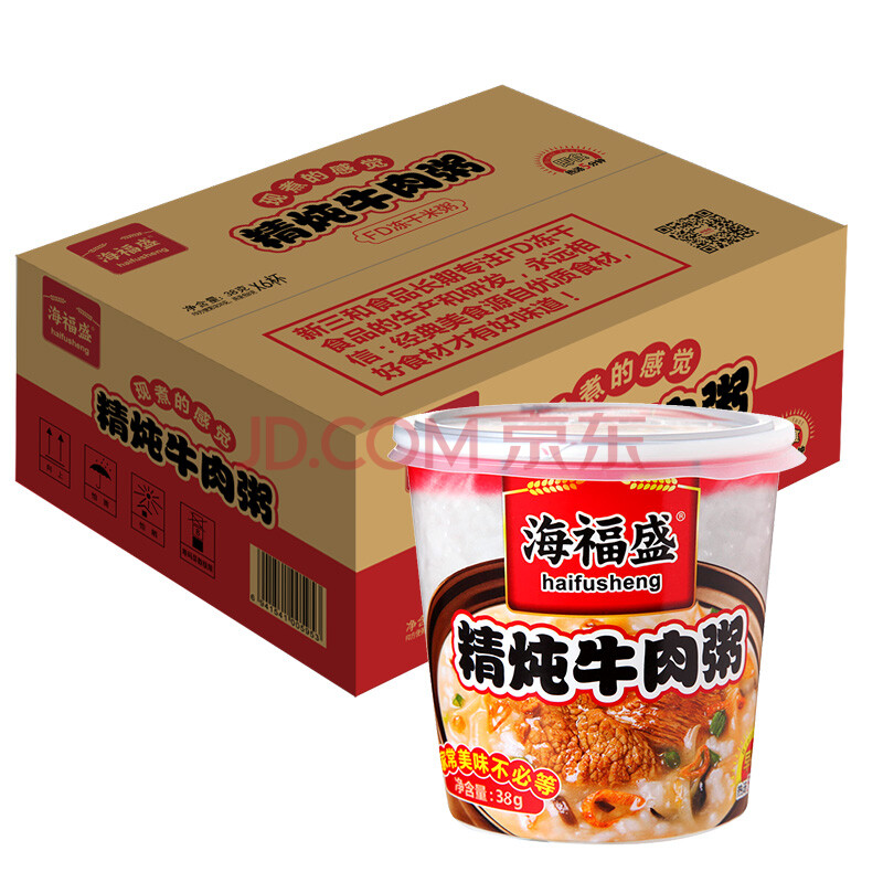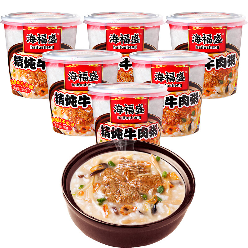 海福盛 早餐粥 精炖牛肉粥 冲泡方便速食粥 FD冻干粥 38g*6杯 整箱装