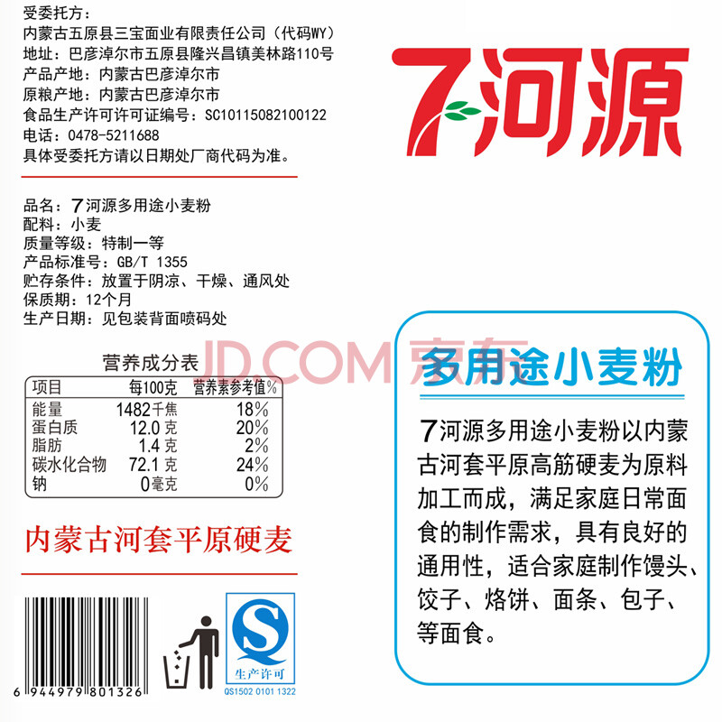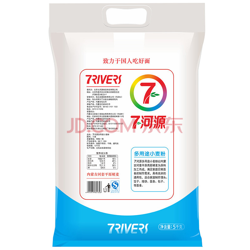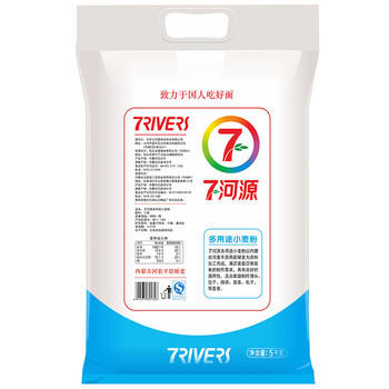 七河源河套面粉 多用途小麦粉 小麦粉 中筋粉 通用5kg(新老包装交替发货)