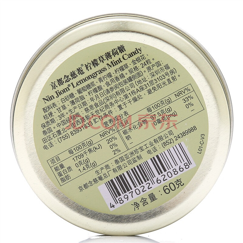 泰国进口 京都念慈蓭柠檬草薄荷糖 60g 润喉糖 糖果零食 硬糖