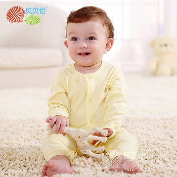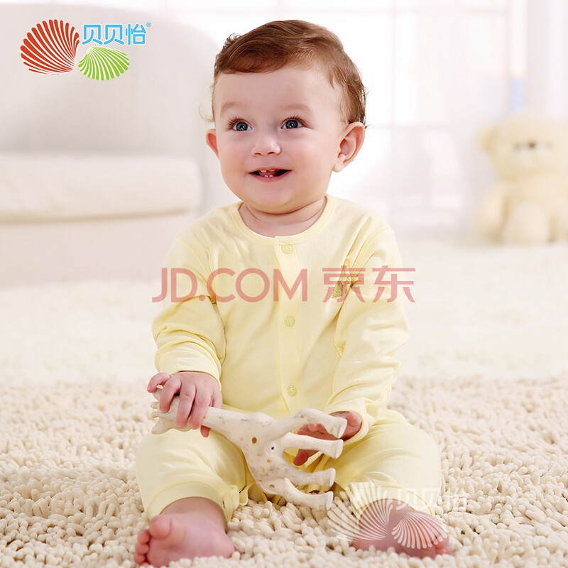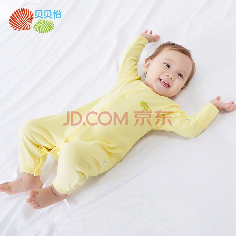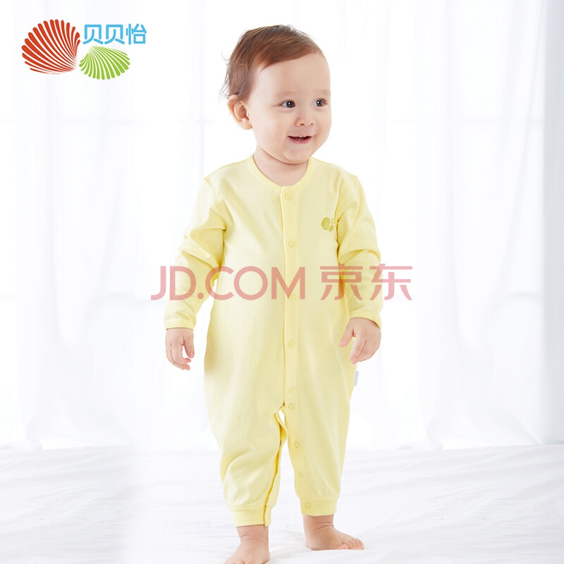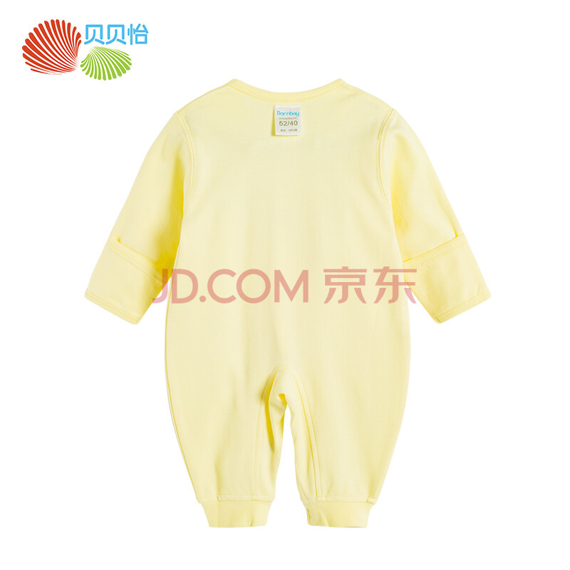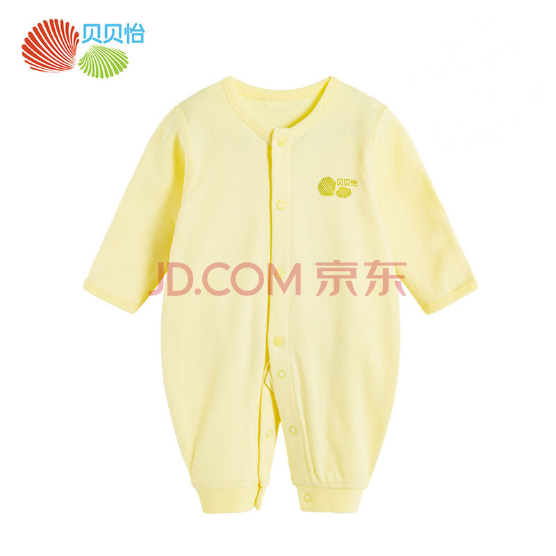 贝贝怡 Bornbay 婴儿连体衣舒适柔软新生儿内衣前开扣哈衣爬服BB129 淡黄 66cm
