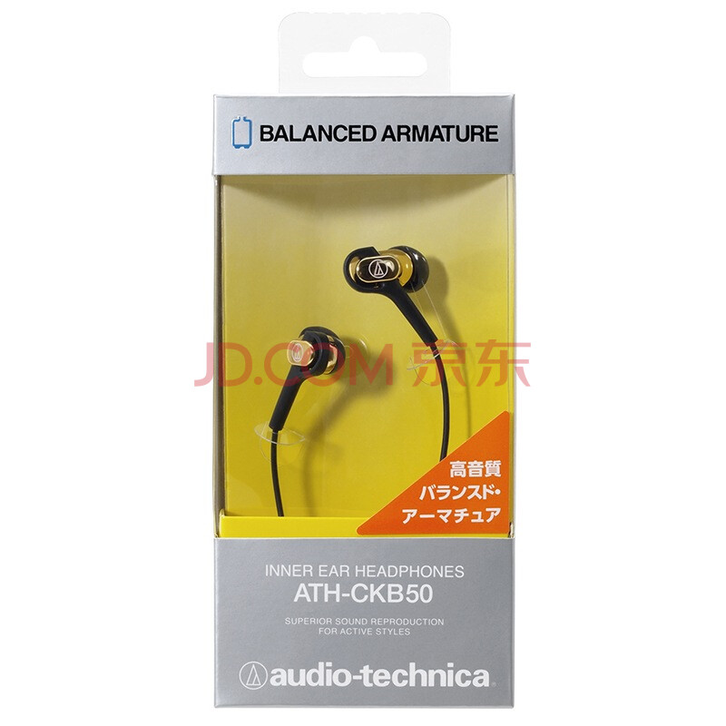 铁三角 CKB50 平衡动铁时尚入耳式耳机 金色 手机耳机 运动耳机