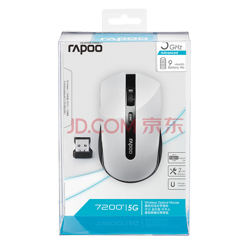 雷柏(Rapoo) 7200P 无线鼠标 办公鼠标 笔记本鼠标 白色