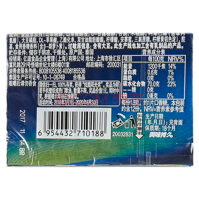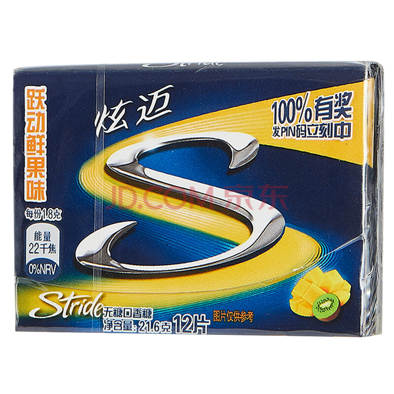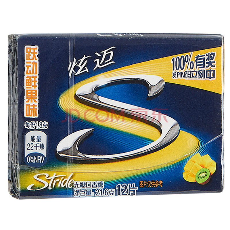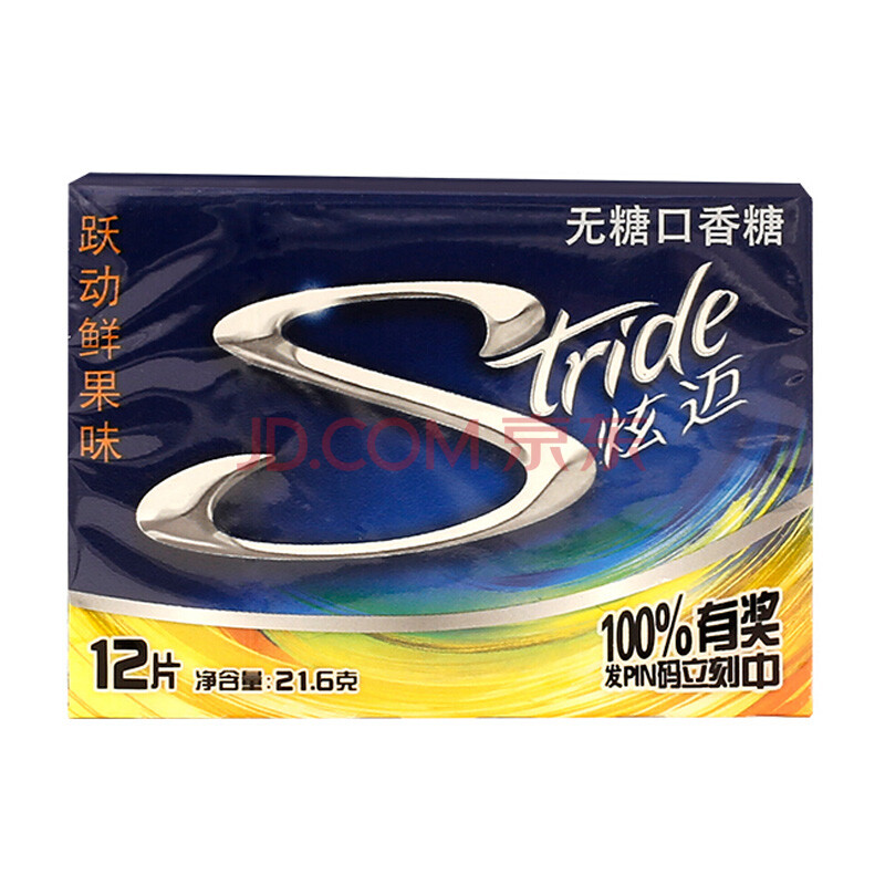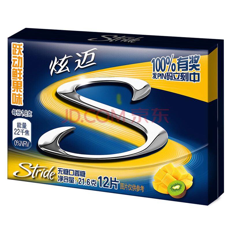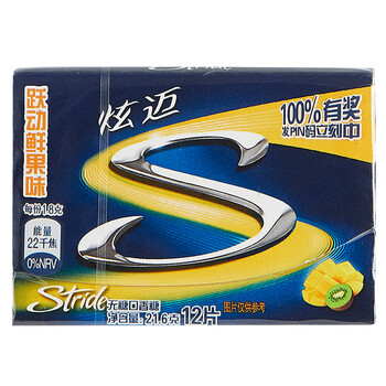 炫迈(Stride)无糖口香糖跃动鲜果味12片 糖果零食21.6g (新老包装随机发货)
