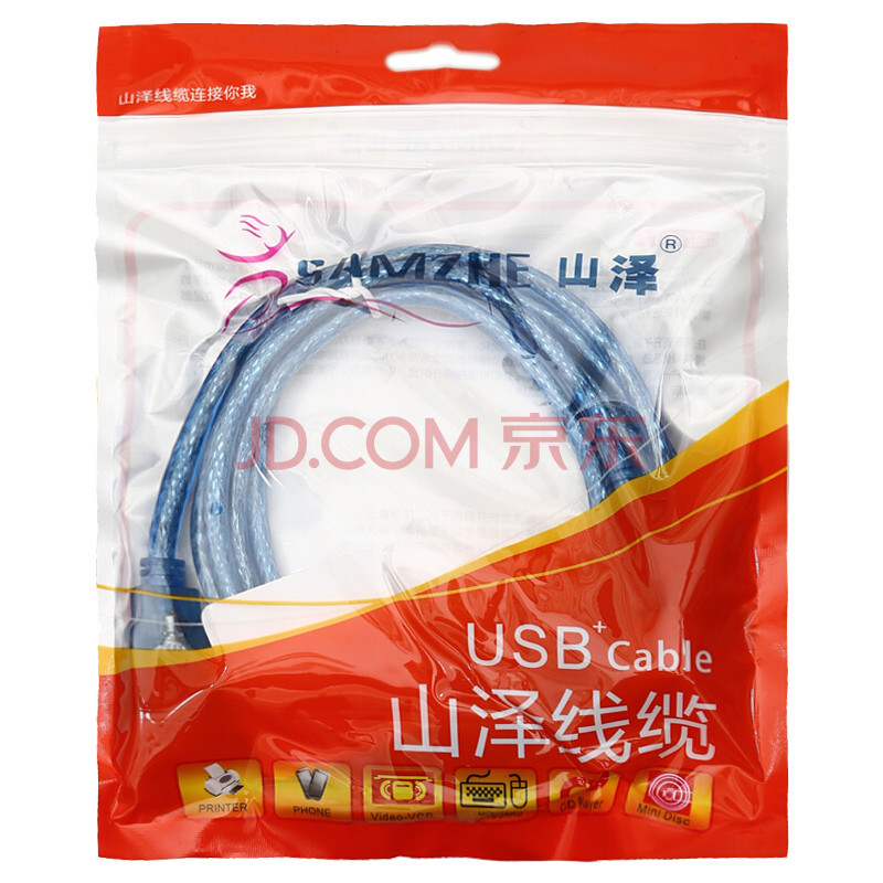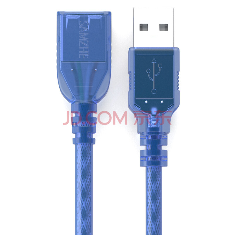 山泽(SAMZHE) BL-930 USB2.0高速传输数据延长线 公对母 AM/AF 数据连接线 U盘鼠标键盘加长线 透明蓝3米