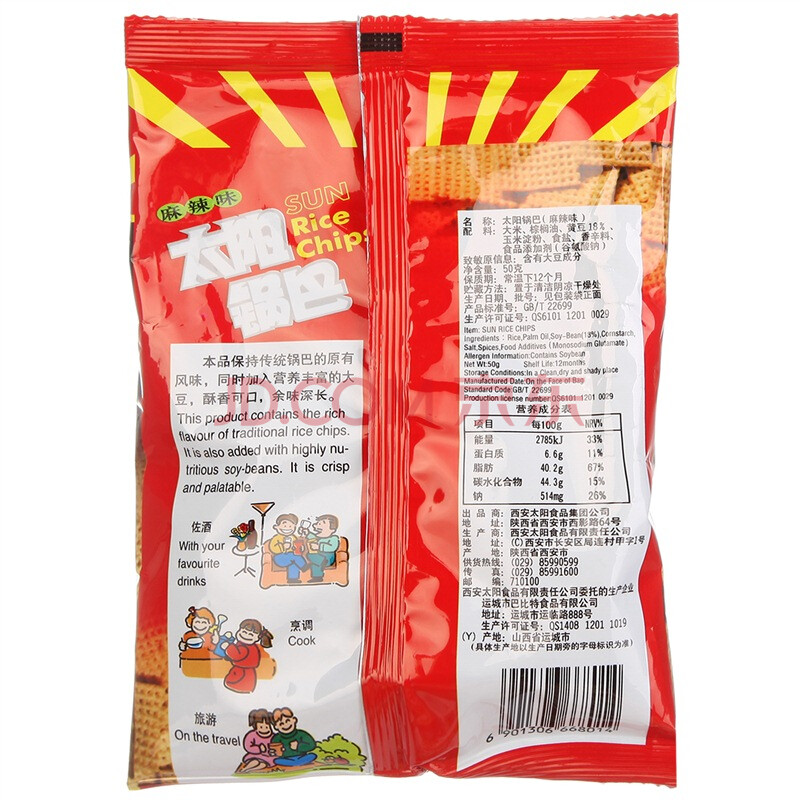 太阳锅巴 豆香 麻辣味 550G(50G*11袋)