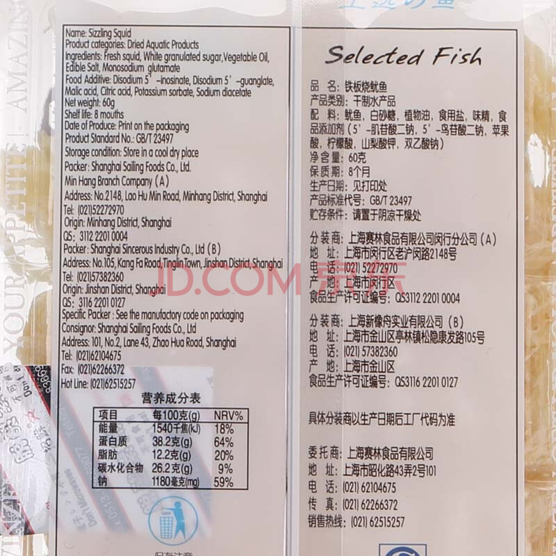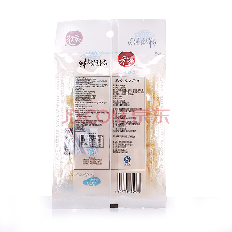 元臻 肉干肉脯 休闲零食 铁板烧鱿鱼原味60g*2袋