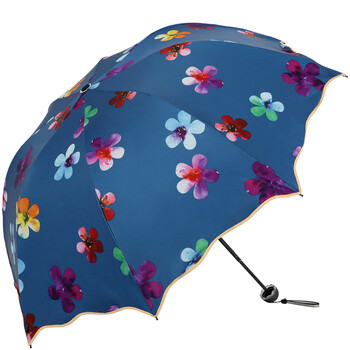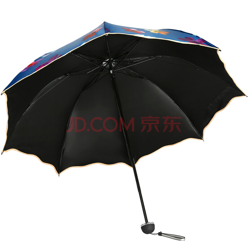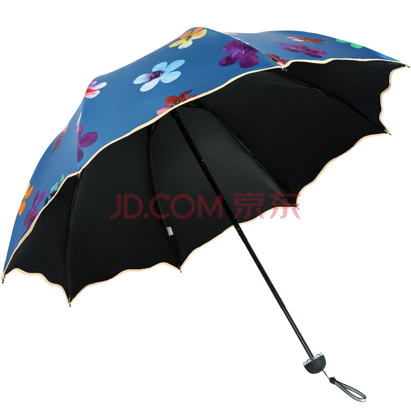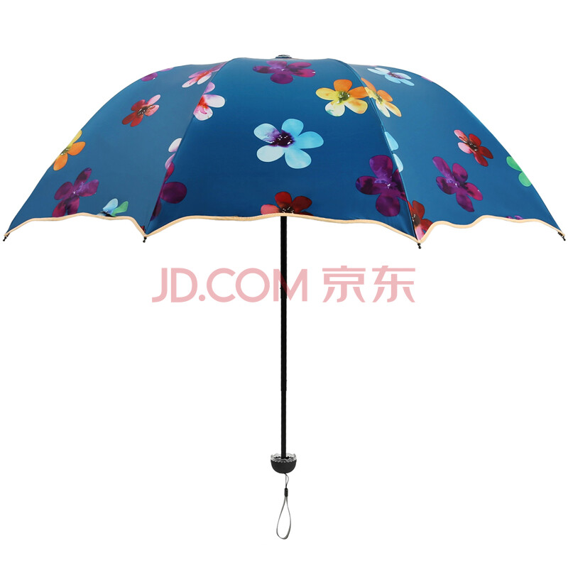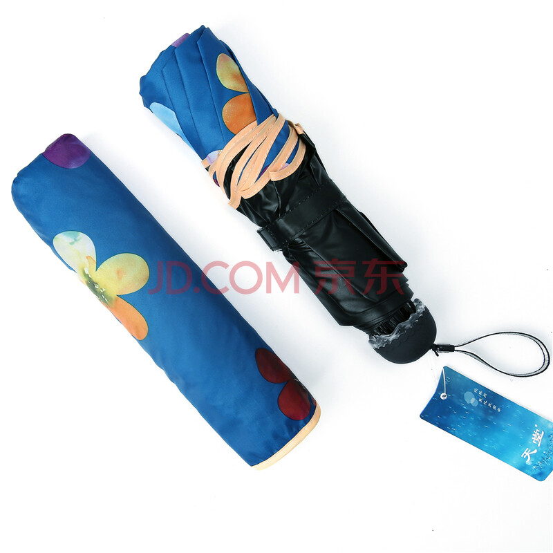 天堂伞 (UPF50+)全遮光黑胶三折太阳伞晴雨伞31823E兰色