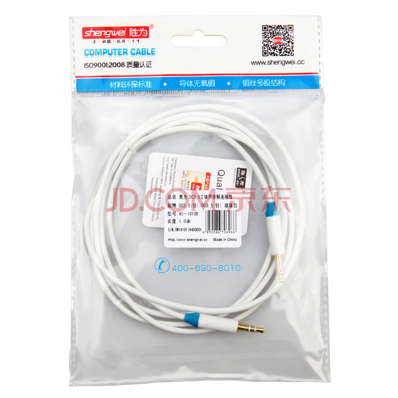 胜为(shengwei)AC-1010B 公对公音频线 AUX音频线车用 3.5mm 1米白色 手机车载AUX音频连接线