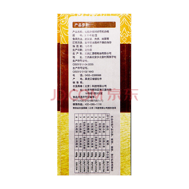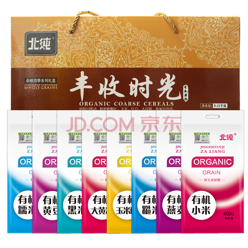 北纯 有机 丰收时光 东北五谷杂粮礼盒3.11kg(礼品包 节日礼物 年货 公司福利 团购)