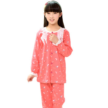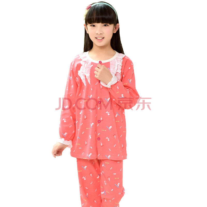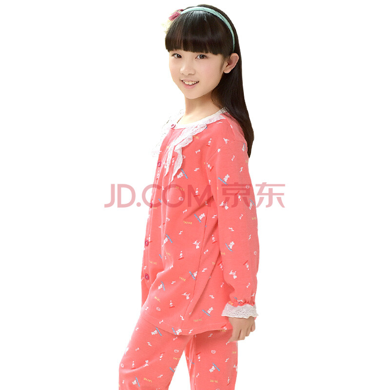 南极人(Nanjiren)儿童睡衣男女童春秋长袖棉质休闲家居服睡衣套装女童长袖西瓜红小狗140