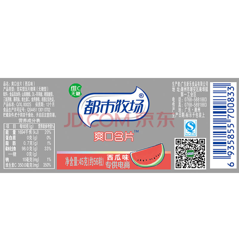 都市牧场 无糖维c爽口含片 润喉压片糖 薄荷话梅糖 水果糖 西瓜味 45g