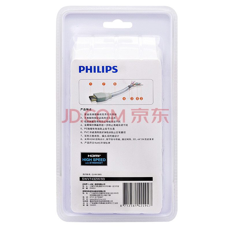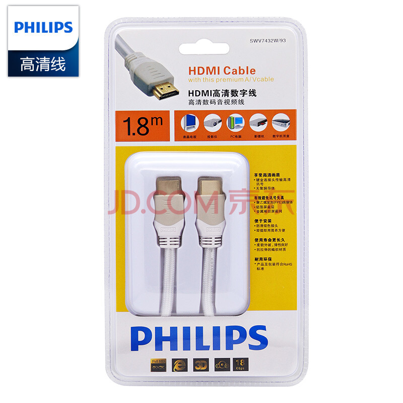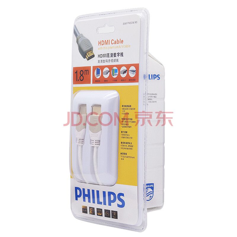 飞利浦(PHILIPS)HDMI高清数字线1.8米 SWV7432W/93