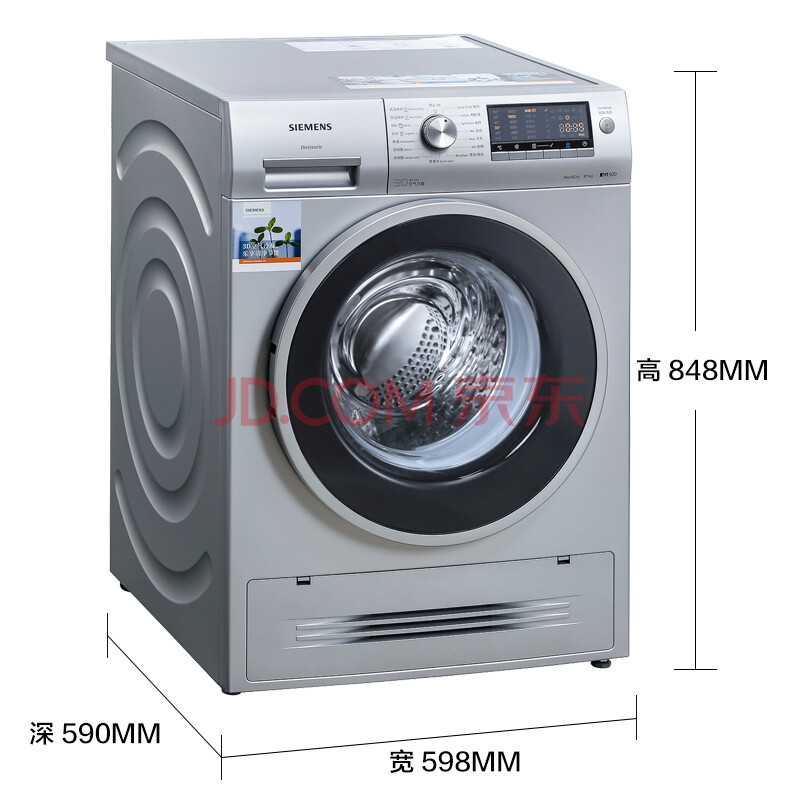 西门子(SIEMENS) 8公斤 洗烘一体变频 滚筒洗衣机 3D空气冷凝 立体烘干(银色) XQG80-WD14H4682W