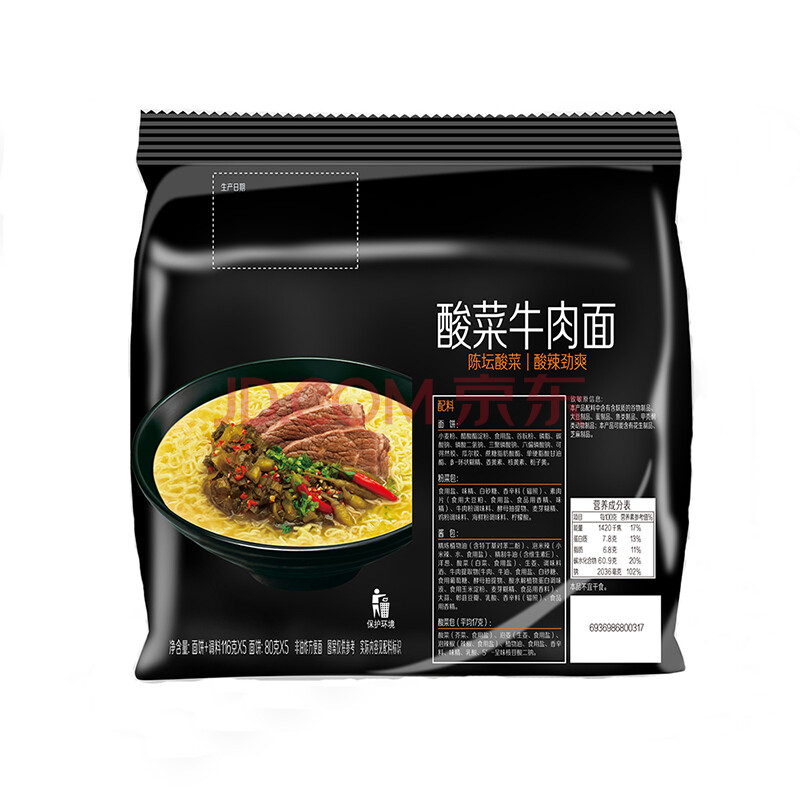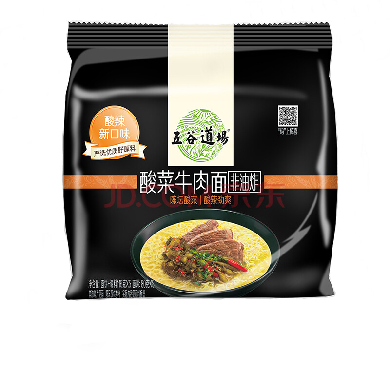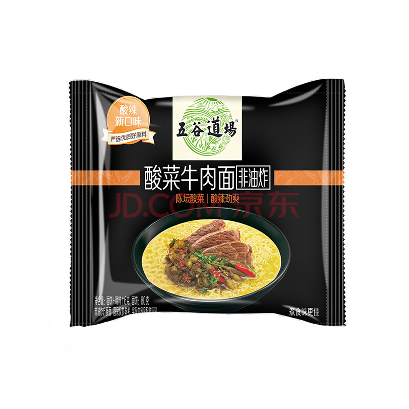 五谷道场 方便面 非油炸 酸菜牛肉面 五连包