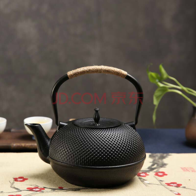 品茶忆友 功夫茶具 茶壶仿日本铁壶泡茶壶煮茶壶功夫茶壶铸铁茶壶 大粒子1.8L(黑色)