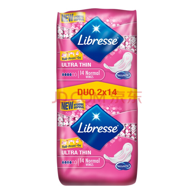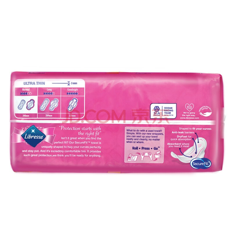 轻曲线(Libresse) 日用卫生巾240mm 28片 干爽瞬吸防漏塑形流量适中型【欧洲原装进口】