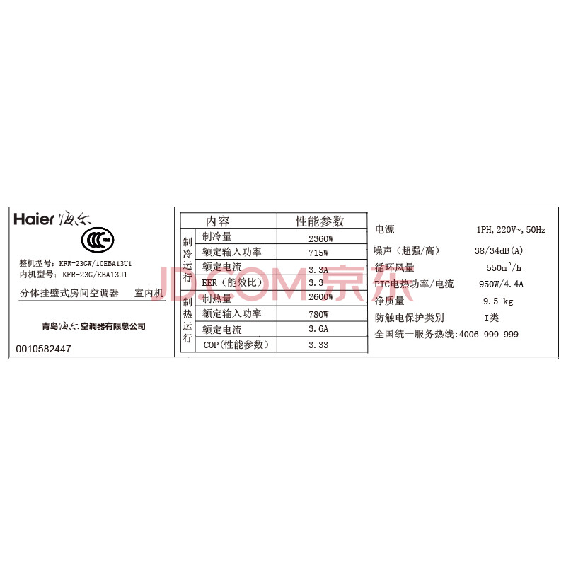 海尔(Haier)小1匹 京东战神 单冷 定频 急速制冷 大风量 一键除湿 空调挂机 KF-23GW/10EBA13