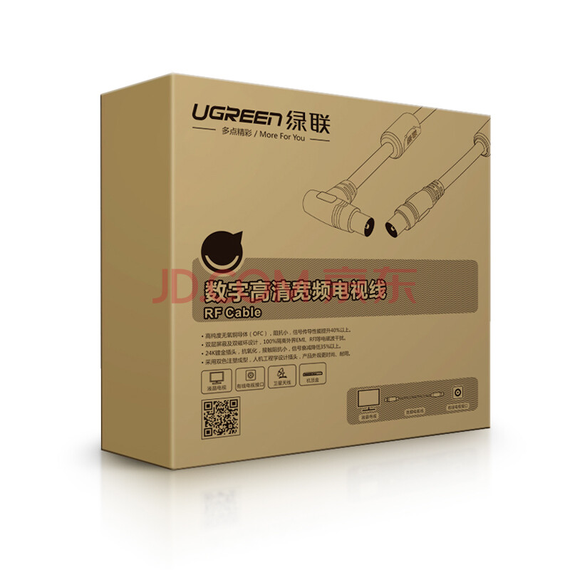 绿联(UGREEN)有线电视信号线 高清闭路线双磁环RF射频线 电视TV机顶盒接头连接线 F头双公制 1.5米 10713
