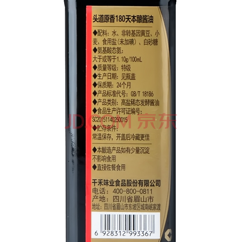 千禾 头道原香180天小瓶试吃装特级生抽黄豆酿造 零添加酱油150ml