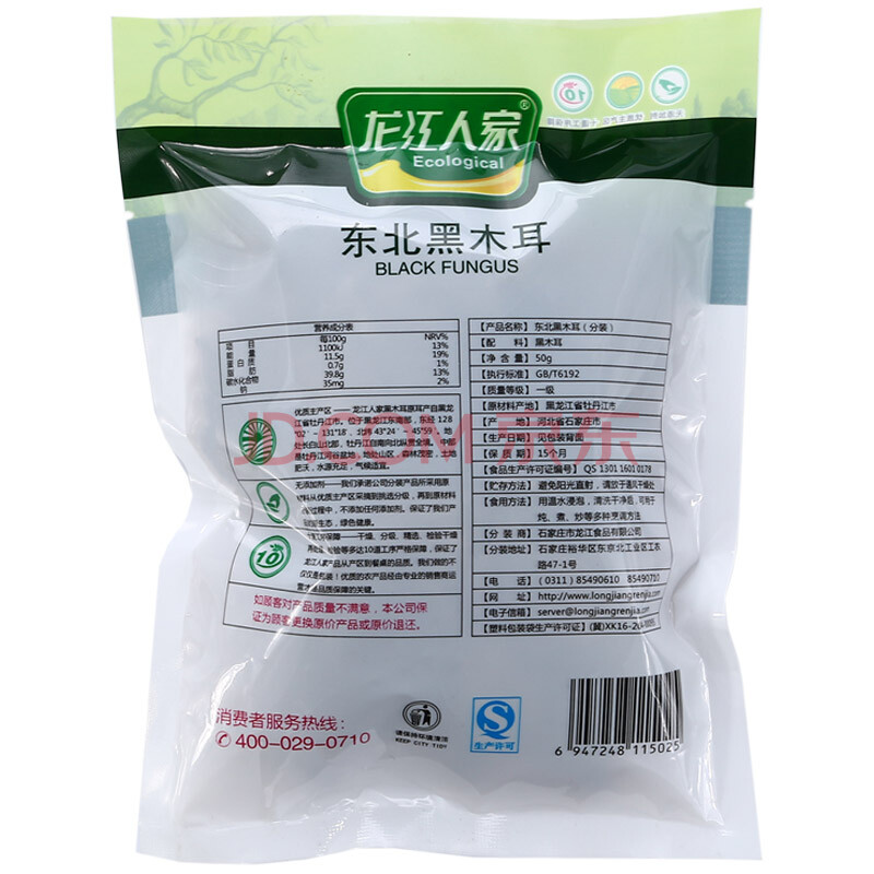 龙江人家 秋木耳干货 东北黑木耳50g 家庭装
