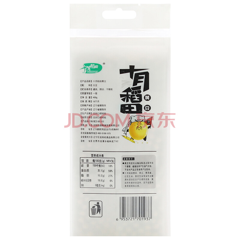 十月稻田 黄豆 400g(无添加 可发豆芽 打豆浆 大豆 东北 五谷 杂粮 真空装 大米伴侣)
