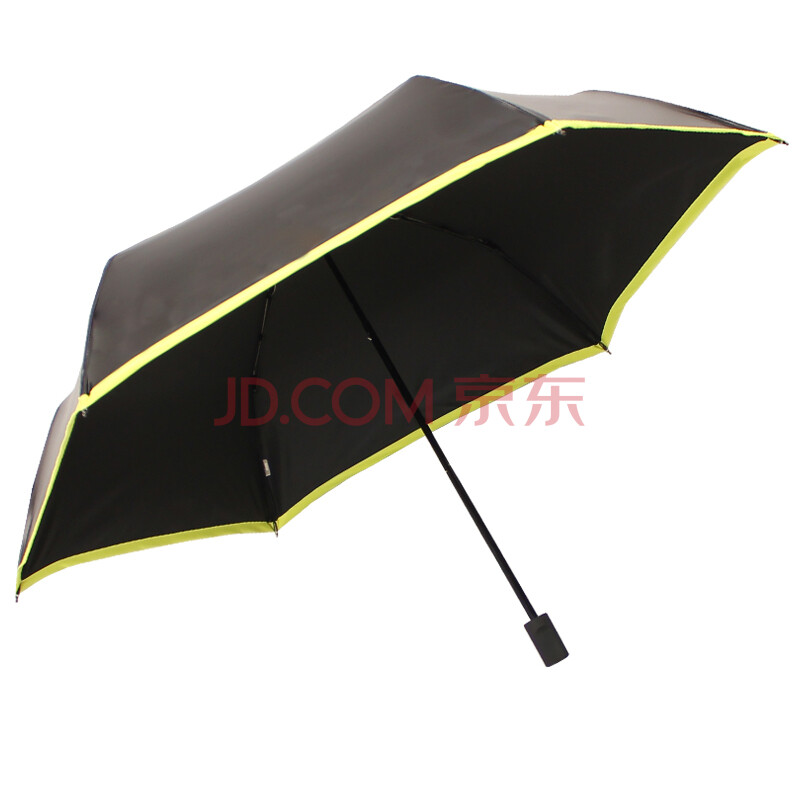 天堂伞(防晒UPF50+)碳纤黑丝靓胶色织三折铅笔晴雨伞太阳伞 亮黄边 31016ELCJ
