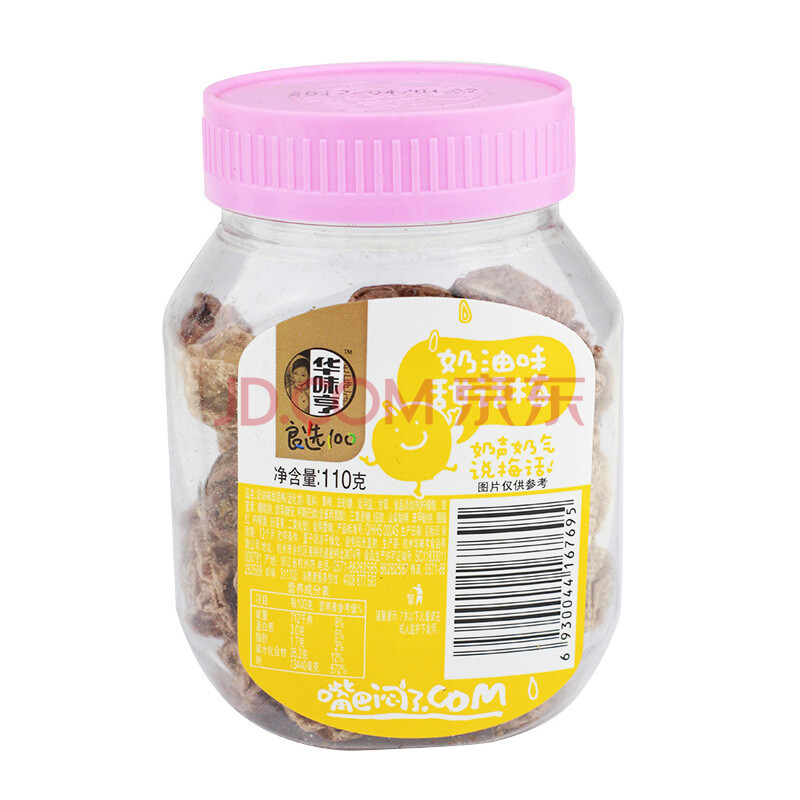 华味亨 奶油味甜话梅110g/罐 休闲食品 零食 梅子 话梅 办公零食小吃