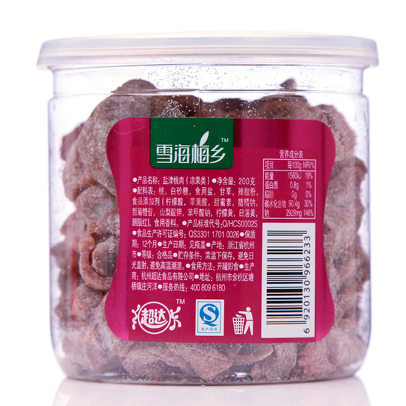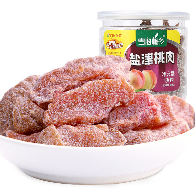 雪海梅乡 蜜饯果脯零食果肉特产 无核咸酸梅肉 盐津桃肉180g罐装