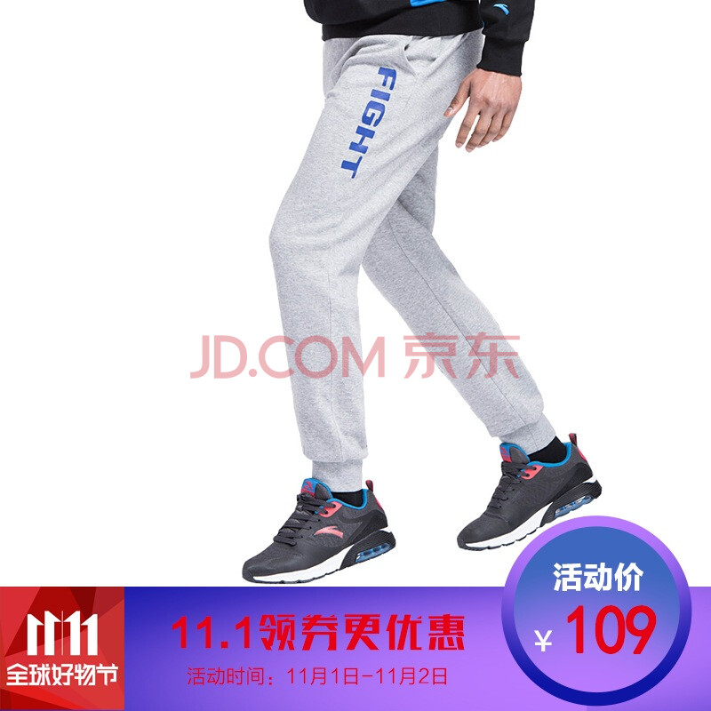 安踏(ANTA) 男裤95537748针织运动长裤修身字母收腿裤小脚裤舒适运动裤 BC17灰花灰-4 3XL/190