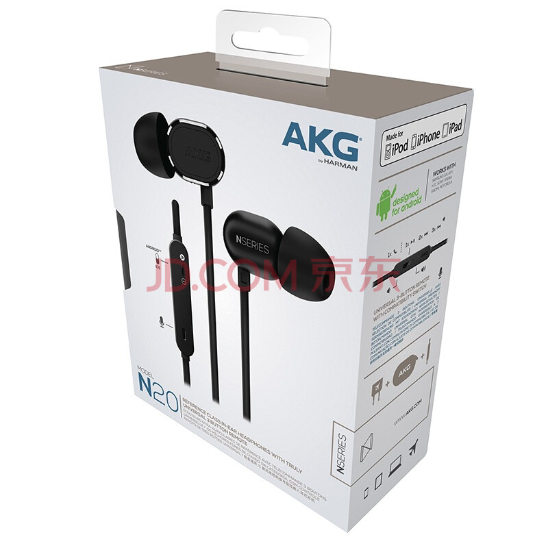 爱科技(AKG)N20U 入耳式耳机 HIFI音乐耳机 重低音手机耳机 耳麦线控 苹果安卓双系统切换三键耳机 黑色
