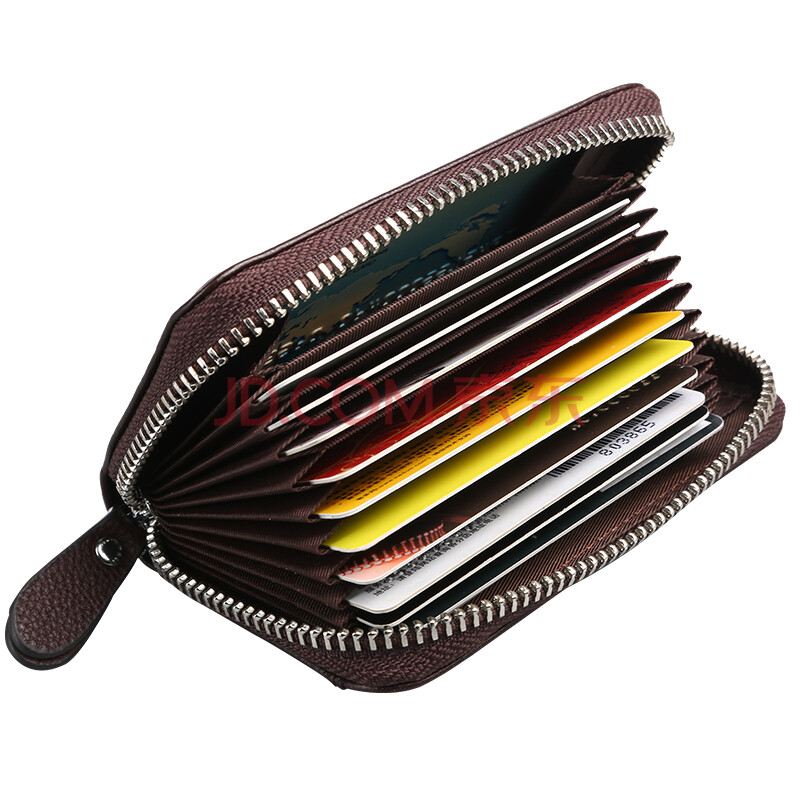 博牌Bopai卡套包夹男士头层牛皮卡包 零钱包卡夹名片包卡片包 拉链银行卡套啡色716-005832